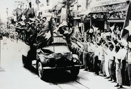10月10日、フランス軍の最後の部隊が完全撤退するのと入れ替わりに、ベトナム人民軍大308号師団が首都ハノイに入城。 市民はベトナム国旗を掲げ、熱烈に歓迎しました。