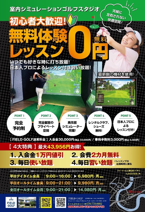 初心者の方も多く来ていただいておりまして、最初からレッスンプロにスイングを教えてもらってよかったと、多くの声を頂戴しております。