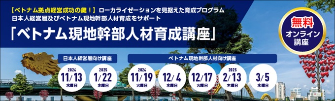 ※「ベトナム現地幹部人材向け講座 第5回」はホーチミン市内ホテル「Sofitel Saigon Plaza」にてリアル開催の予定。