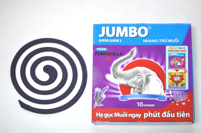 個人的に好きで最近使っているのは、日本でおなじみフマキラーがベトナムで販売している「JUMBO VAPE」ブランドの黒い蚊取り線香。「森の香り」がとても良く、煙が少なくてけむたくならないので気に入っています。