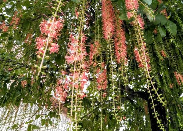 サガリバナ(サワフジ)の花房。こちらも夜開花する果実は下痢止めに
