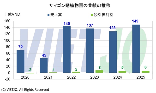 ホーチミン市サイゴン街区(旧1区)のサイゴン動植物園は、2025年の売上高が前年比+16%増の約1486億VND(約9億円)、税引後利益が同+14%増の約58億VND(約3500万円)となり、5年連続の黒字を維持した。