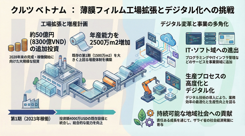 薄膜技術の世界的なリーダーであるドイツのクルツグループ(KURZ Group)のベトナム現地法人クルツベトナム(KURZ Vietnam)は、南中部地方ザライ省(旧ビンディン省)のベカメックスVSIPビンディン工業団地にある既存の薄膜フィルム工場の拡張工事に着手した。