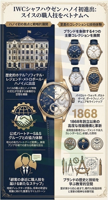 スイスの高級時計ブランドであるIWCシャフハウゼン(IWC Schaffhausen)は18日、公式代理店パートナーであるS&Sグループ(S&S Group)と協力し、ハノイ市内に同ブランドの同市1号店をオープンした。