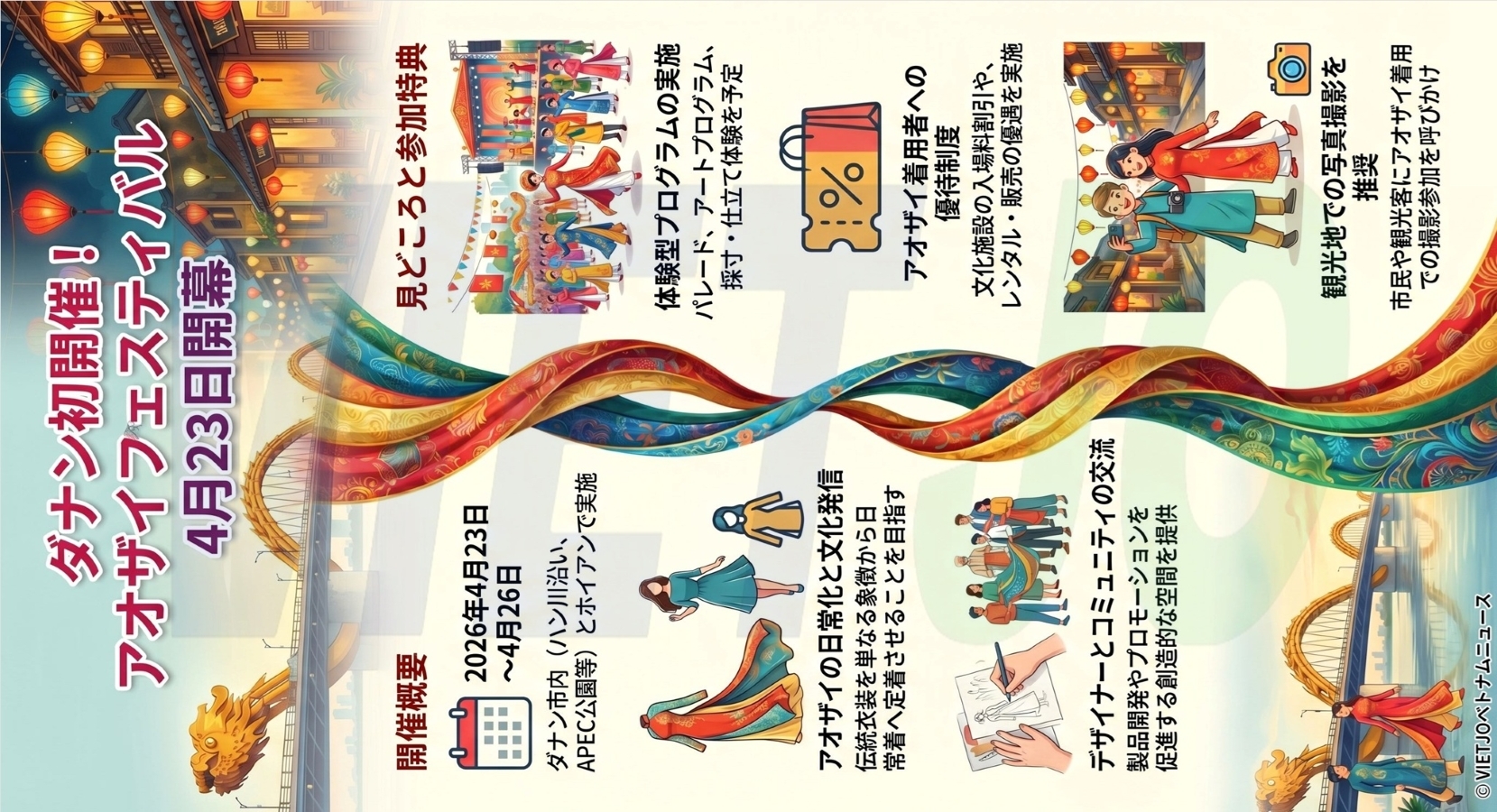 同フェスティバルは、アオザイの魅力を広く発信し、日常生活への定着を促すことを目的とした文化・観光イベントだ。アオザイを単なる象徴的な衣服から日常着へと定着させ、パフォーマンスの場から日常生活へとアプローチを広げることを目指している。また、デザイナーや職人、企業、コミュニティが参加し、アオザイ製品の開発やプロモーションを促進するオープンで創造的な空間となる。