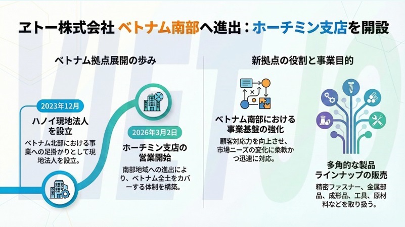 同社は今回の支店開設により、ベトナム南部地域における事業体制を一層強化し、市場ニーズの変化に柔軟かつ迅速に対応できる体制を構築していく方針だ。