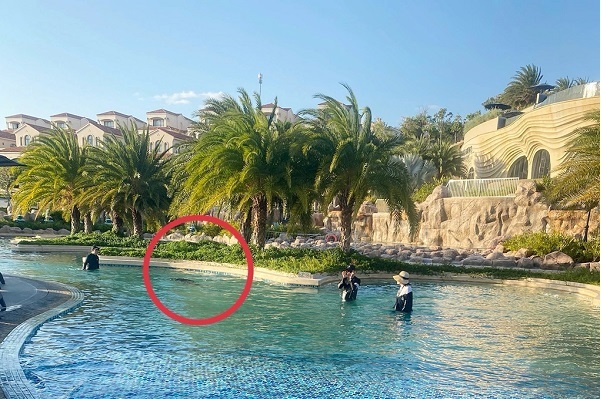 プールの深さは1.0m、少年の身長は1.4mだったが、事故当時、少年は背中と腕が金属メッシュに吸い込まれ、吸引力があまりにも強かったため、頭部が水中に沈んでいた。近くで泳いでいた複数の成人男性が助けに入ったが、引き揚げられた時点で既に心肺停止の状態だった。