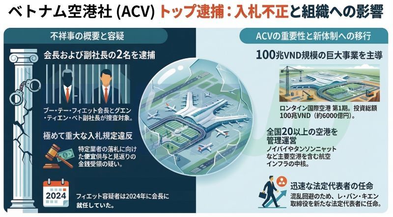 ACVはベトナムの航空インフラ分野で中心的な役割を担っており、ノイバイ国際空港やホーチミン市タンソンニャット国際空港など、全国の20以上の空港を管理・運営している。また、投資総額100兆VND(約6000億円)を超えるロンタイン国際空港第1期プロジェクトの事業主でもある。