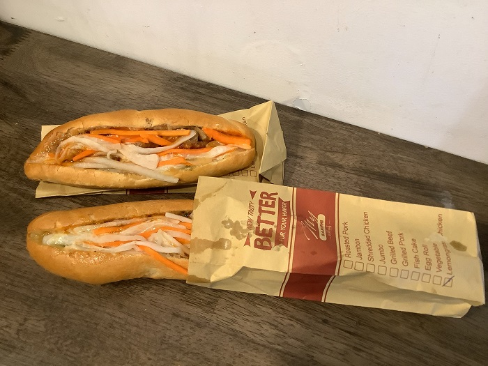 大ぶりのなますがたっぷり入ったその下にローストポークやパクチーがたたずんでいて、全体的にはバインミーの味となっている。