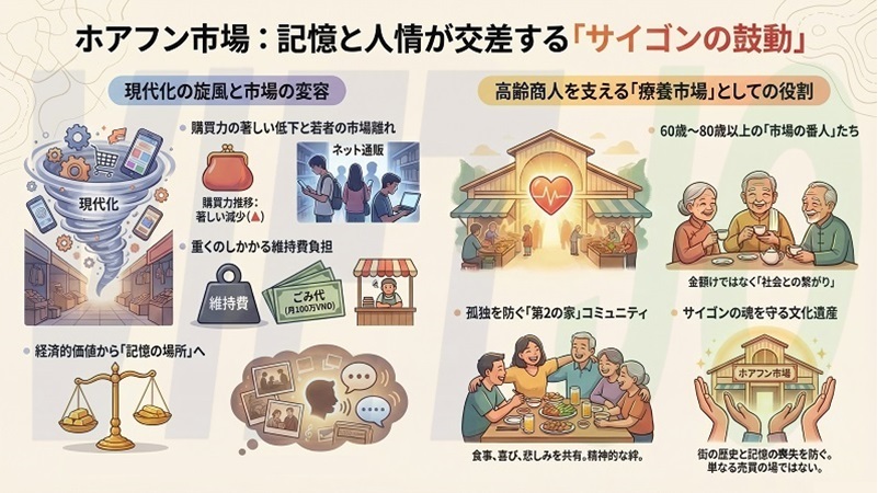 ホーチミン市が現代化の旋風に巻き込まれる中、ホアフン市場のような伝統的な民生市場は、「より効率的な運営」に向けた撤去や改修の提案にさらされている。