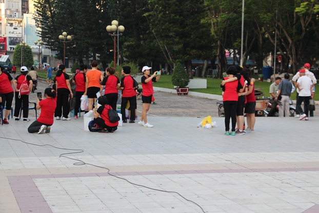 ここホーチミンでは、日中の日差しが強いためか、日の出や日の入りあたりの過ごしやすい時間帯に、外に出て過ごしている人が多いようで、日本では信じられないほどの人々が公園にうじゃうじゃいます。