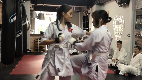 現在、道場の会員の中にはテコンドーなどの格闘技経験者も一部いますが、ほとんどが未経験者で若い女性もけっこう多いです。 ベトナムの女性はよく働くと言われることからか、日本に比べると運動へも積極的に取り組んでいる印象 があります。「健康維持のため」「護身のため」といった理由で入会された方が多いです。しかし、慣れてきて組手に参加するようになると、見てるこちらが心配になるぐらい、激しく技を出し合ってることがあり、ベトナムの女性は気持ちが強いなと改めて感じました。考え方や環境的にアスリートを目指す女性はかなり少ないですが、 空手に限らず他の格闘技やスポーツでもベトナム人女性が国際的に活躍できるポテンシャルはある と思われます。