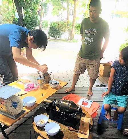 コーヒーの焙煎も行いました。この日はお客様としてコーヒーを待っているのではなく、コーヒー豆の選別から炒りまで、 実際に自分の手を使ってやってみることが目的 でした。イベントのメインはガーデニングだったのですが、「食」の力には勝てず、最後に慌ててのガーデニングの講習となってしまいました。しかし大人も子どもも自らが実際に触れるという体験が楽しさを倍増させたようです。