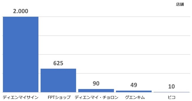 なお、ベトナムの家電・IT製品の小売業界は、◇MWG傘下のテーゾイジードン(The Gioi Di Dong)とディエンマイサイン、◇ IT最大手FPT情報通信[FPT](FPT Corporation)子会社FPTリテール[FRT](FPT Retail)傘下のFPTショップ(FPT Shop)、◇メディアマート(MediaMart)など、地場大手が市場をリードしている。