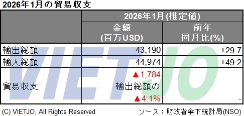 - 1月貿易収支は17.84億USDの赤字